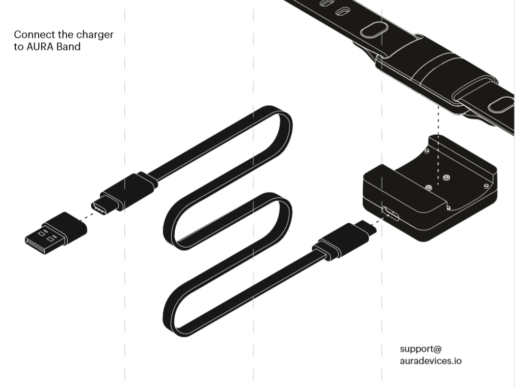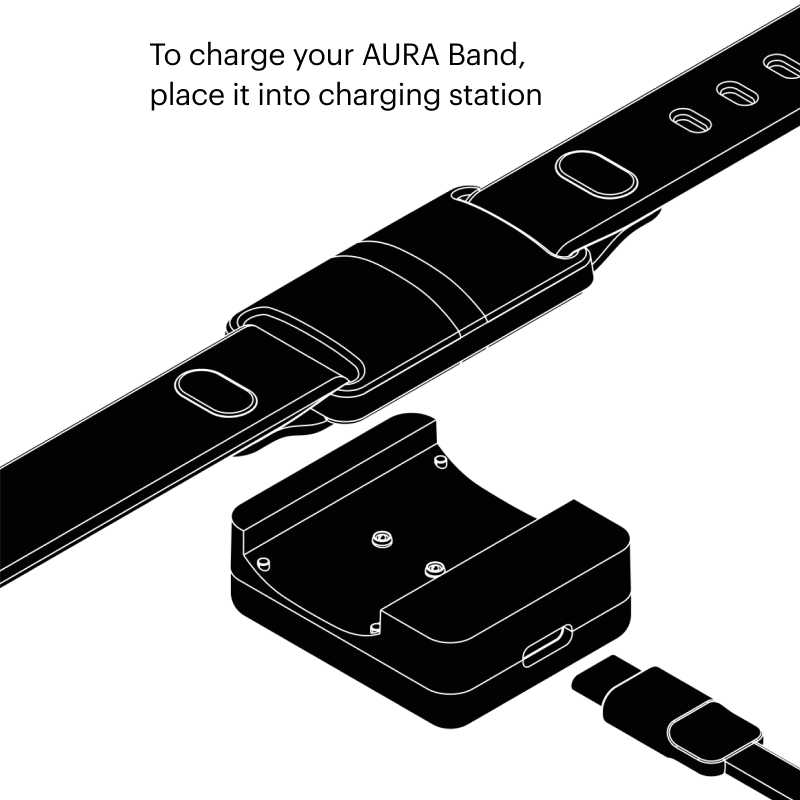 Warning! If the device is completely discharged, you must turn on your AURA Band by pin before charging.